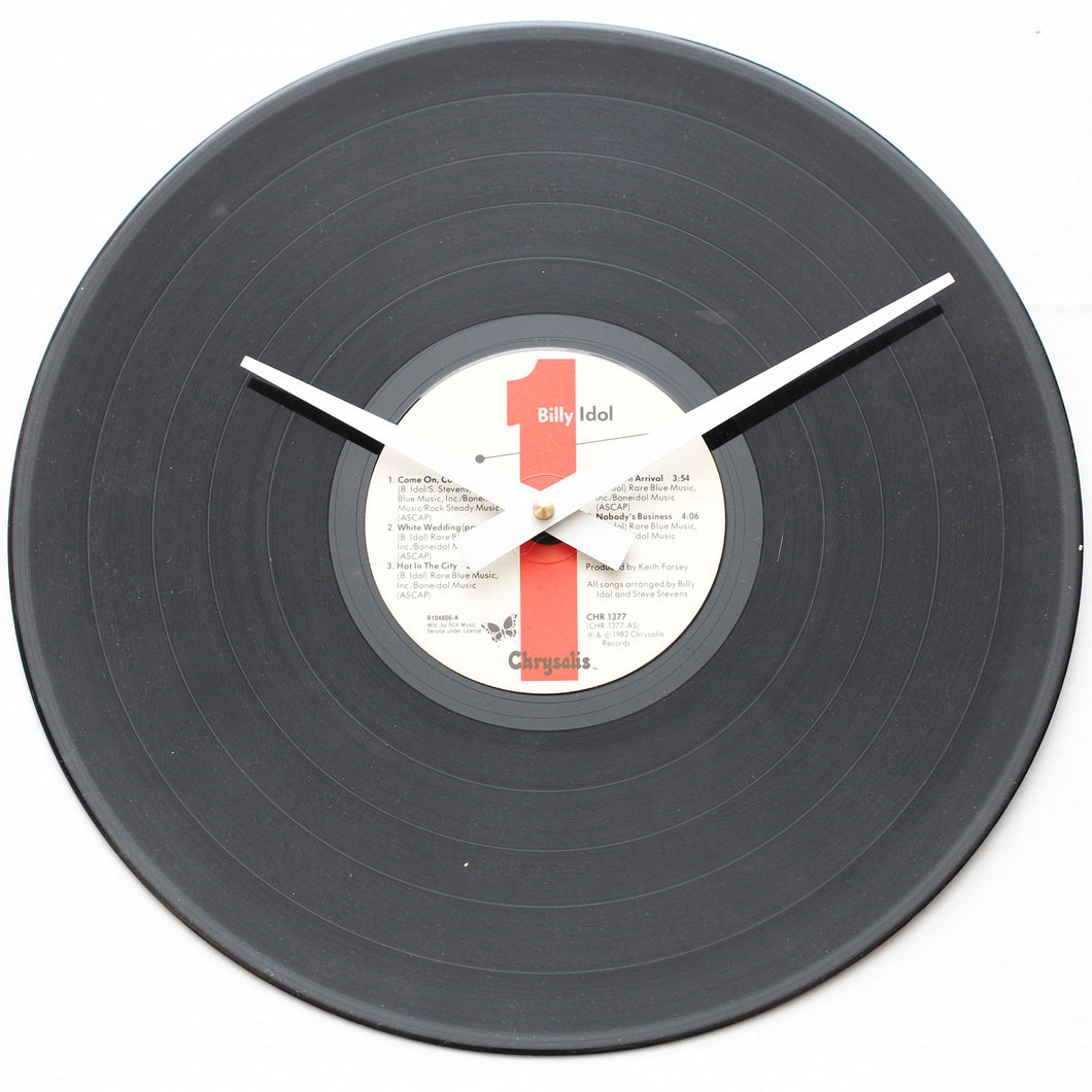 Includes authentic Billy Idol vinyl clock, AA Duracell battery, original album cover, and a handmade 45RPM spacer keychain.